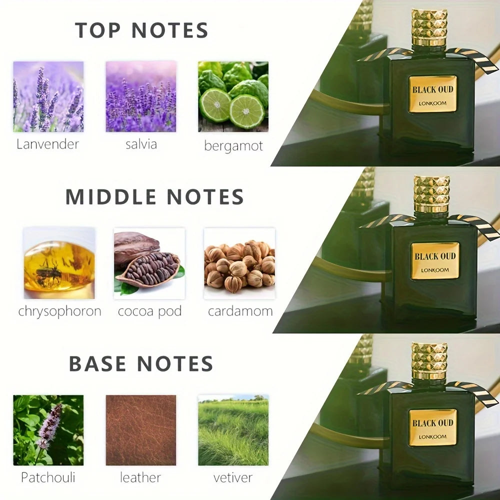 100ml Black Oud Perfume Men's Eau De Toilette Luxury Mysterious Oud Woody Long-Lasting Parfum Fragrance Cologne