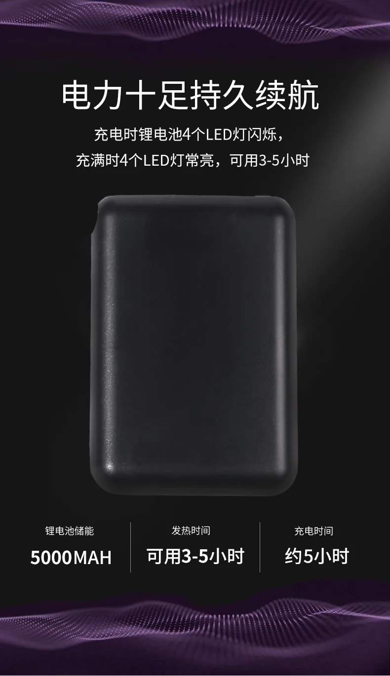 6. it heats under power bank USB connecting, so please keep charging while wearing.