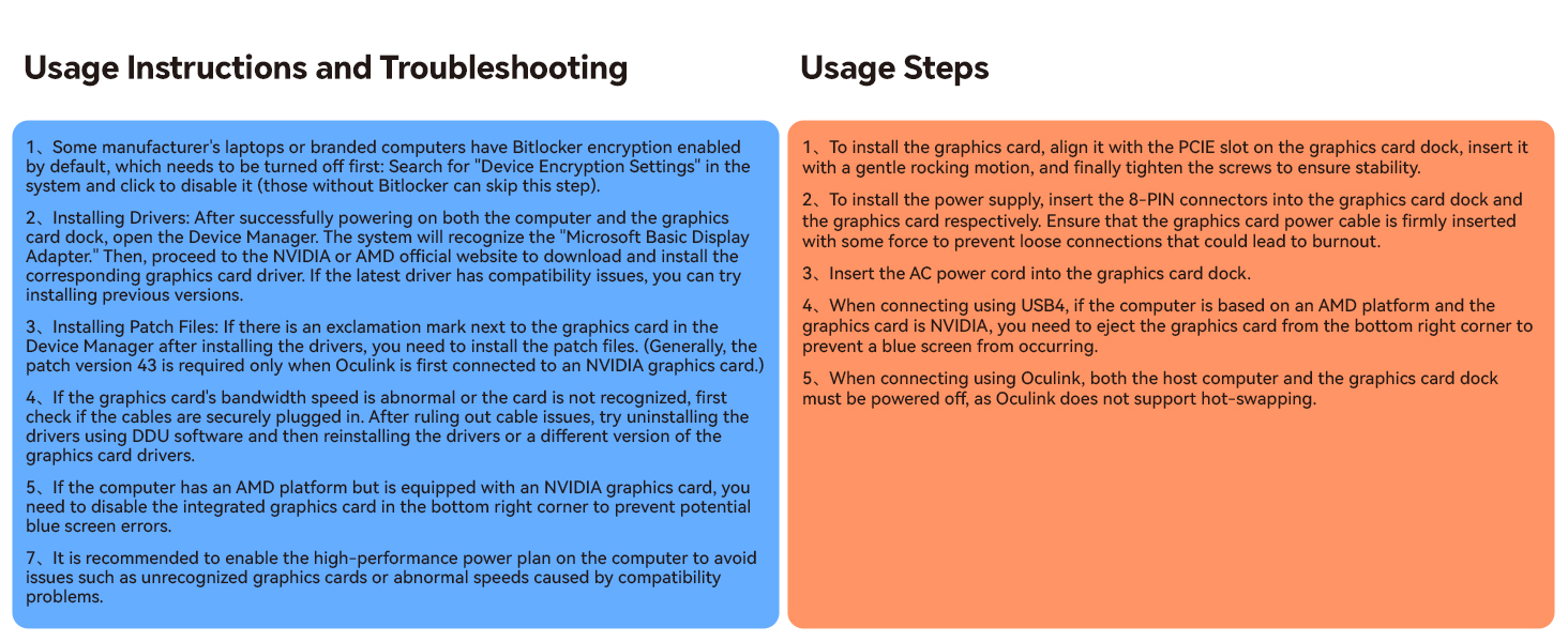 A:Requires host with OCuLink port (some mini PCs). Not compatible with Thunderbolt/USB4 devices.