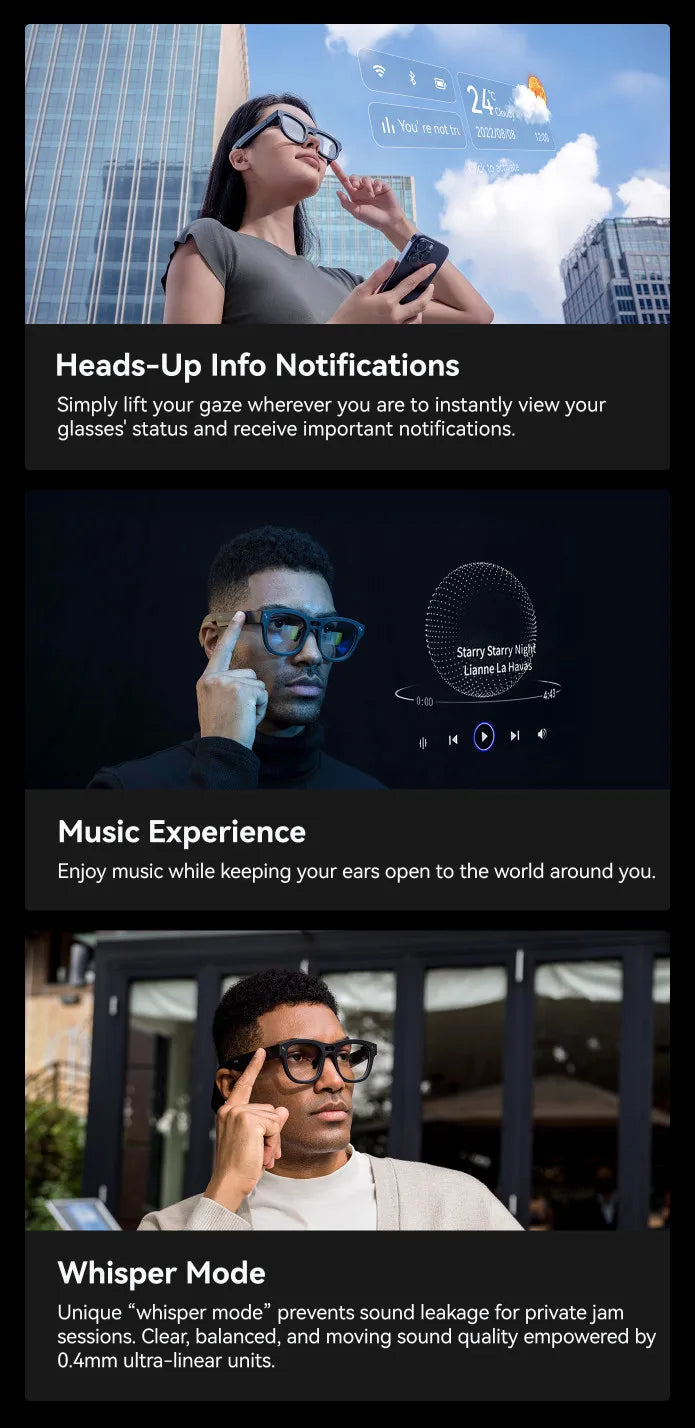 - All-in-one Smart Assistant (Call & Message Push, Photo & Video Filming, Music Playing)