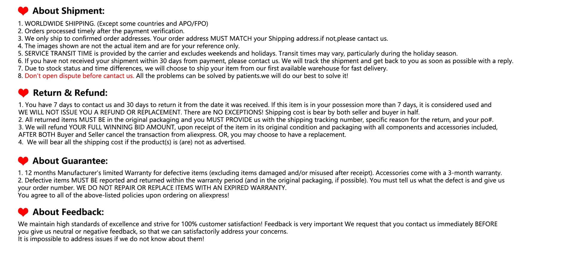 Remote control battery parameters: 4 * 1.5AA (not included)
