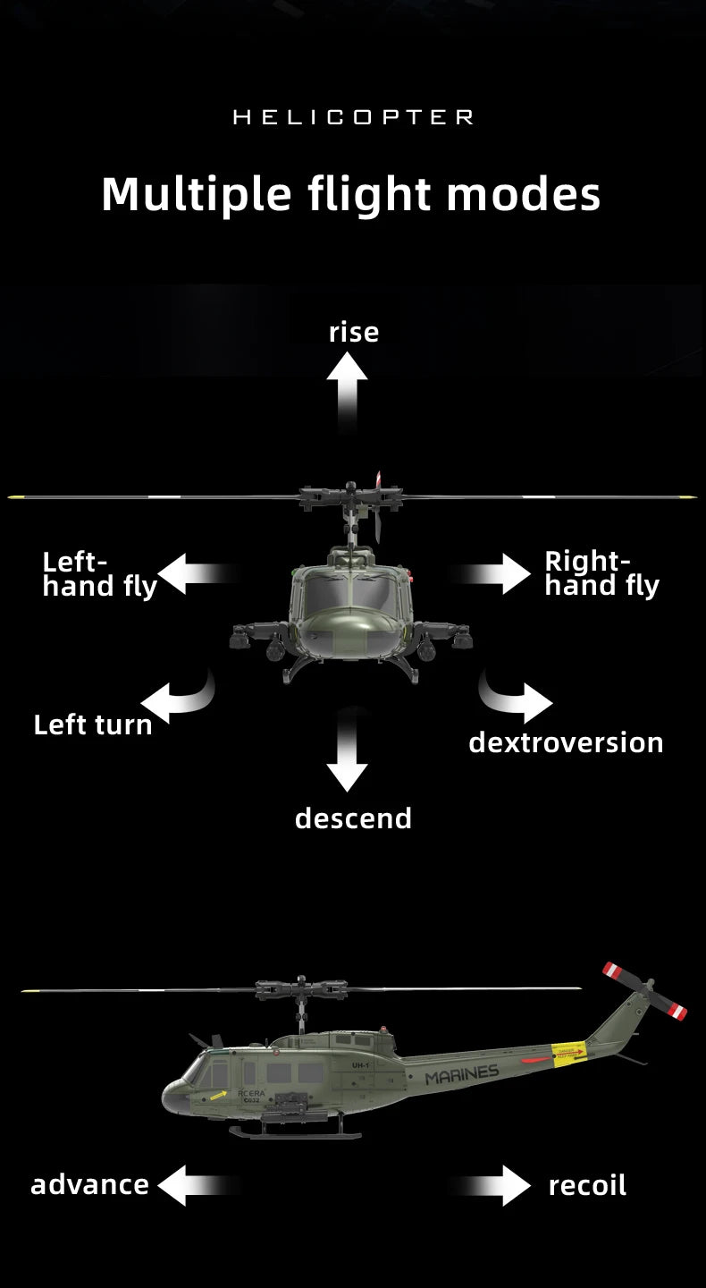 UH-1 Huey intelligent positioning version armed stunt helicopter