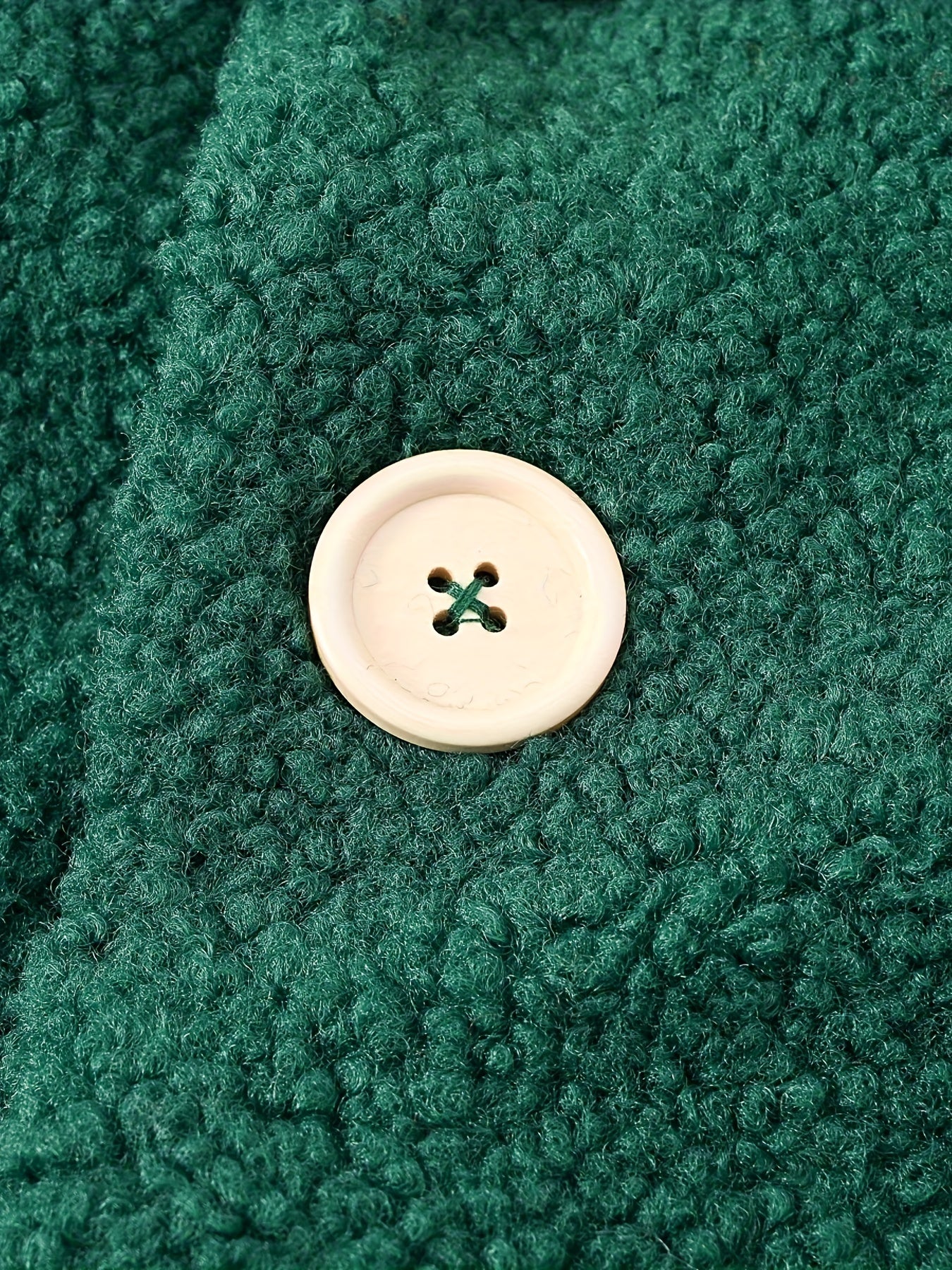[Cozy Fleece Jacket] Cozy Fleece Jacket for Girls - Two-Tone Color Block with Plush Lining, Long Sleeves & Button Front, Casual Korean Style Winter Outerwear | Button-Up Front Jacket | Plush Lining Jacket