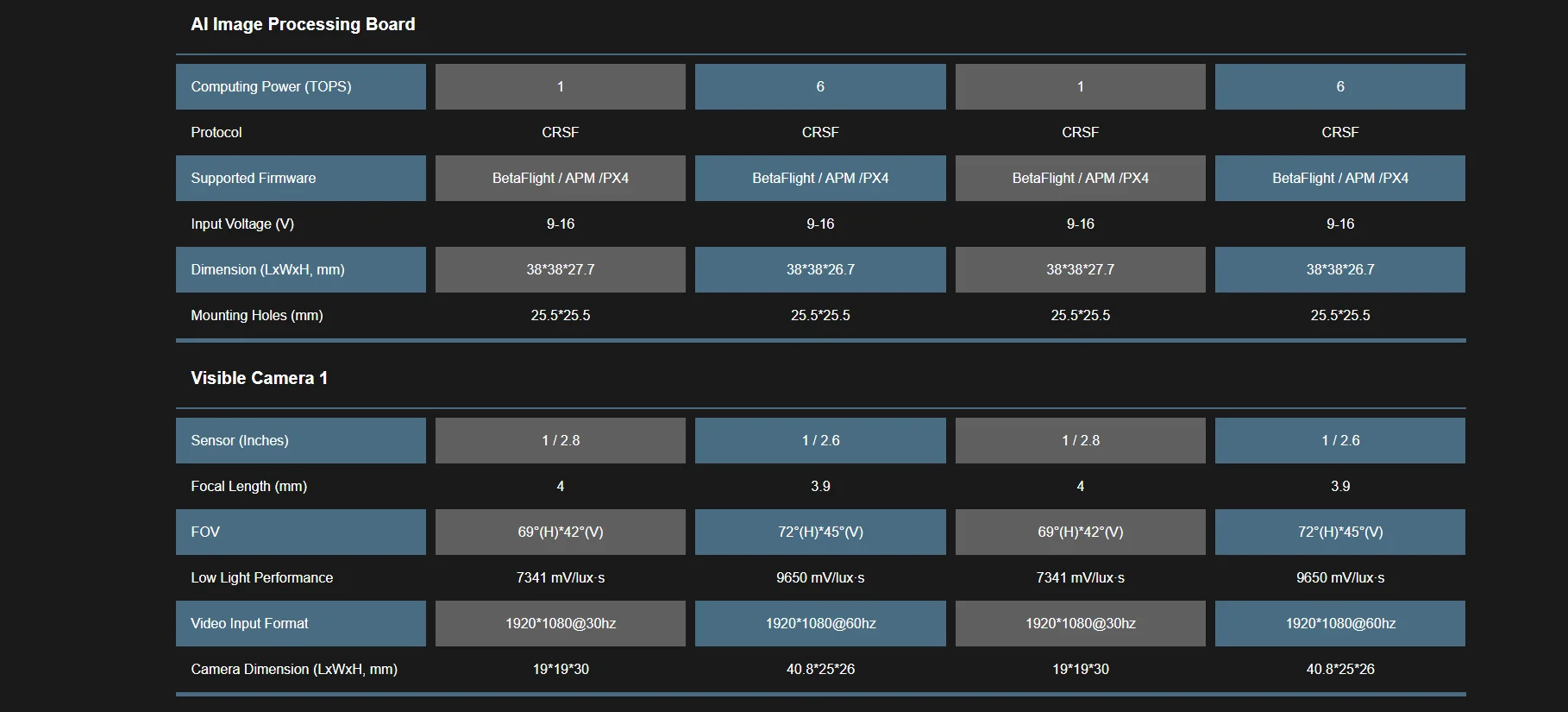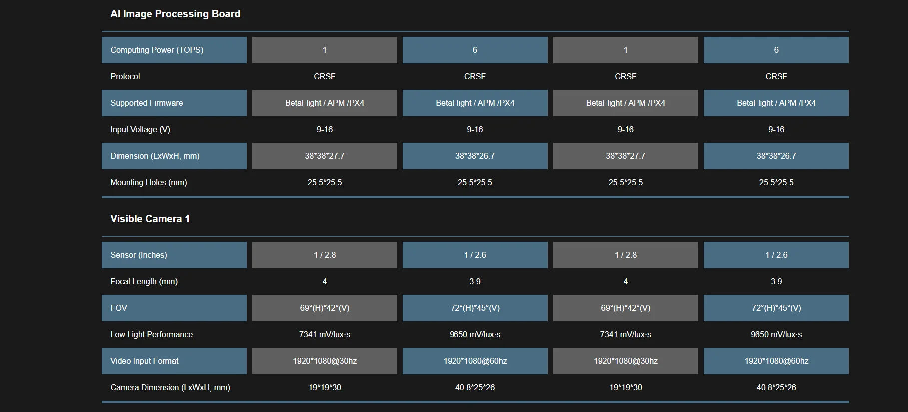 AI image processing board Support firmware: BetaFlight/APM