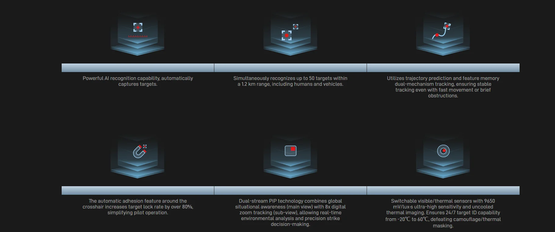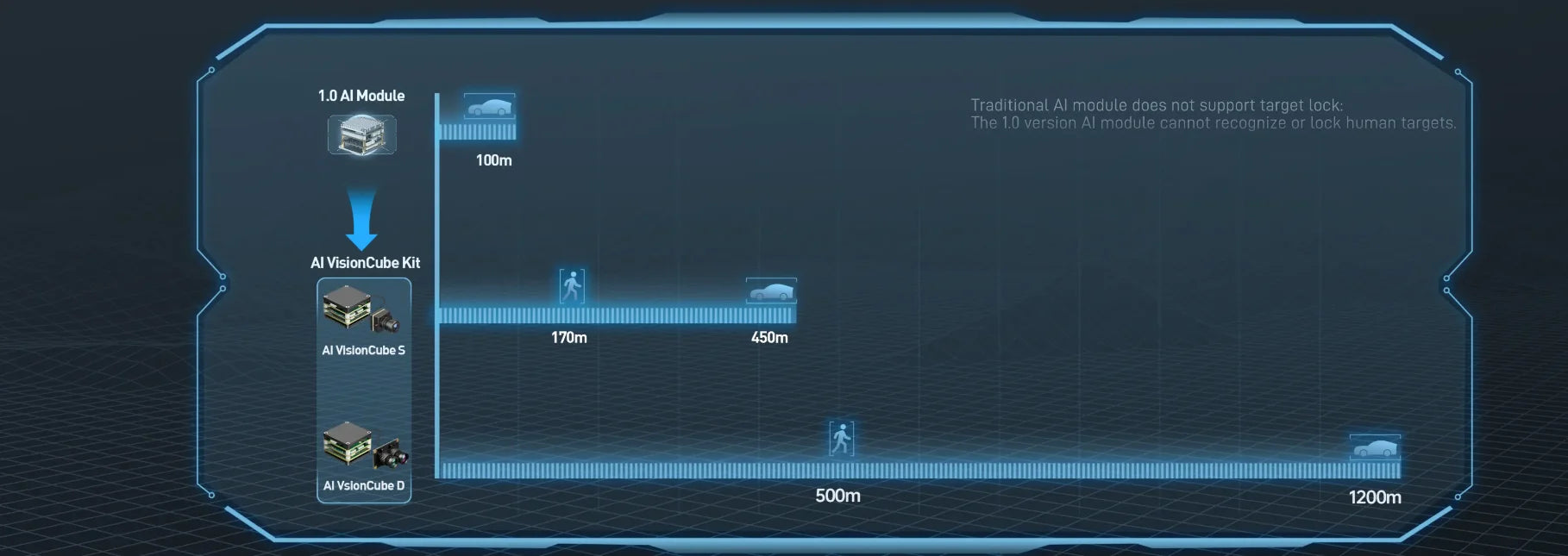 Support target recognition distance: Vehicle: 1200m Human: 500m