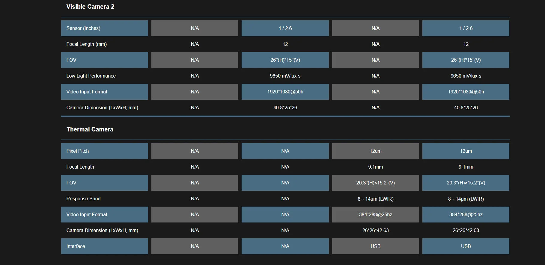 Visible Light Camera 1 Dimensions (LWH mm): 40.8*25*26