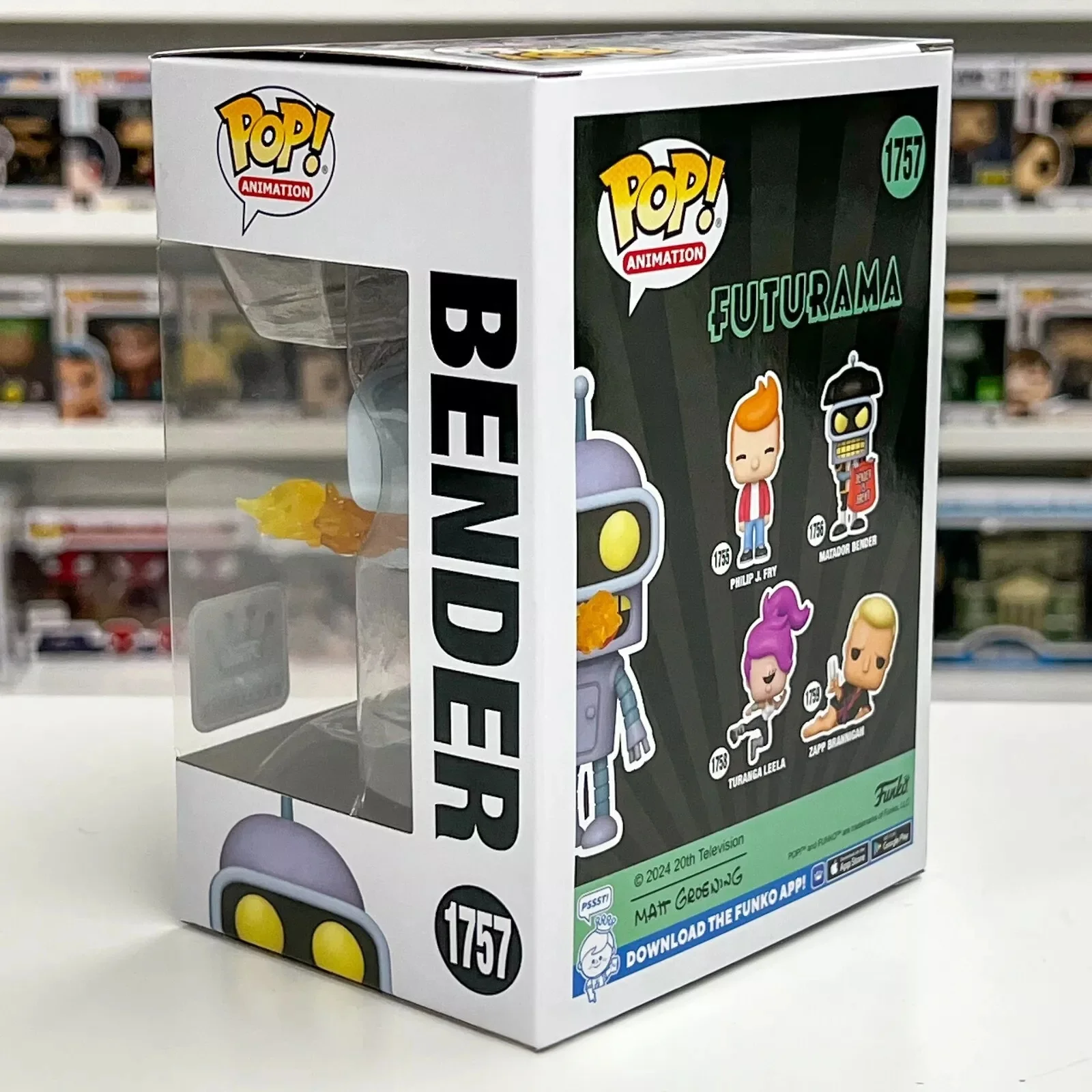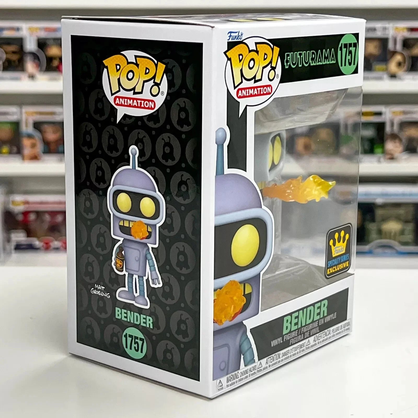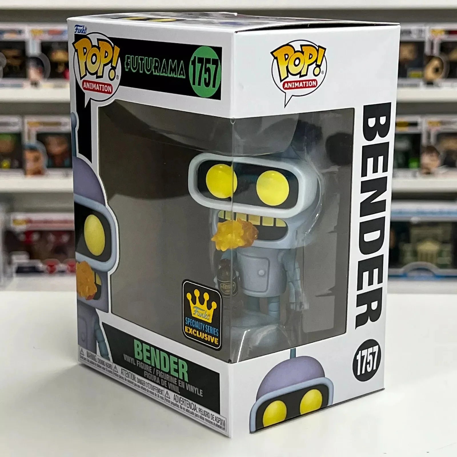 Attribute2: Pop! Bender is here to heat things up in your collection! Assemble your Planet Express delivery crew by making this hilarious robot a part of your Futurama lineup! Theres a 1 in 6 chance you may find the glow-in-the-dark chase of Pop! Bender. Vinyl figure is approximately 4.55 in (11.6 cm) tall