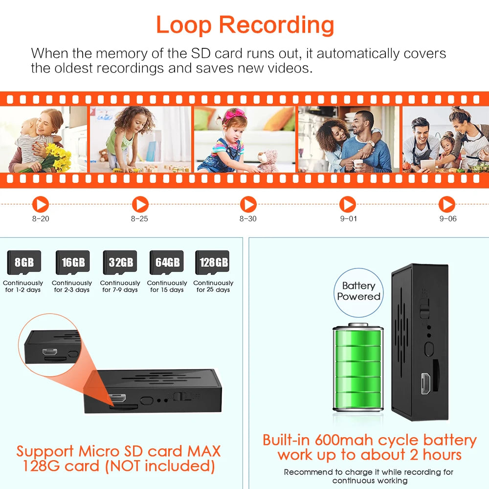1. This mini camera is an HD 1920X1080P camera. High definition for clear and vivid image.