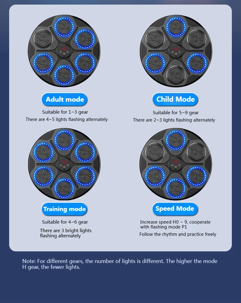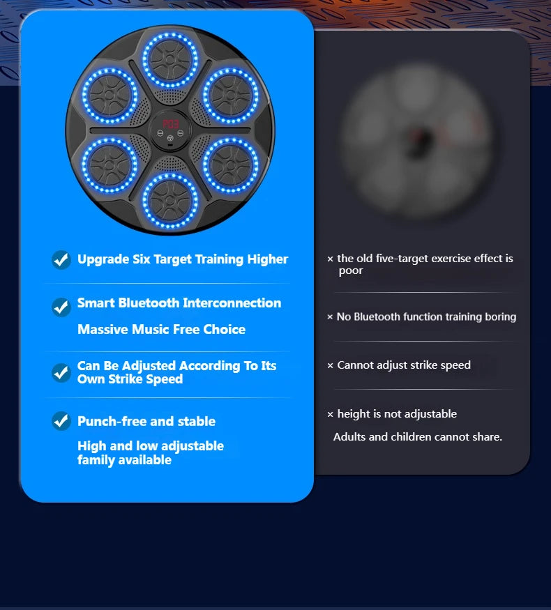 Upgrade Six Target Training Higher, Smart Bluetooth Interconnection, Massive Music Free Choice, Can Be Adjusted According To Its Own Strike Speed, Punch-free and stable, High and low adjustable family available.