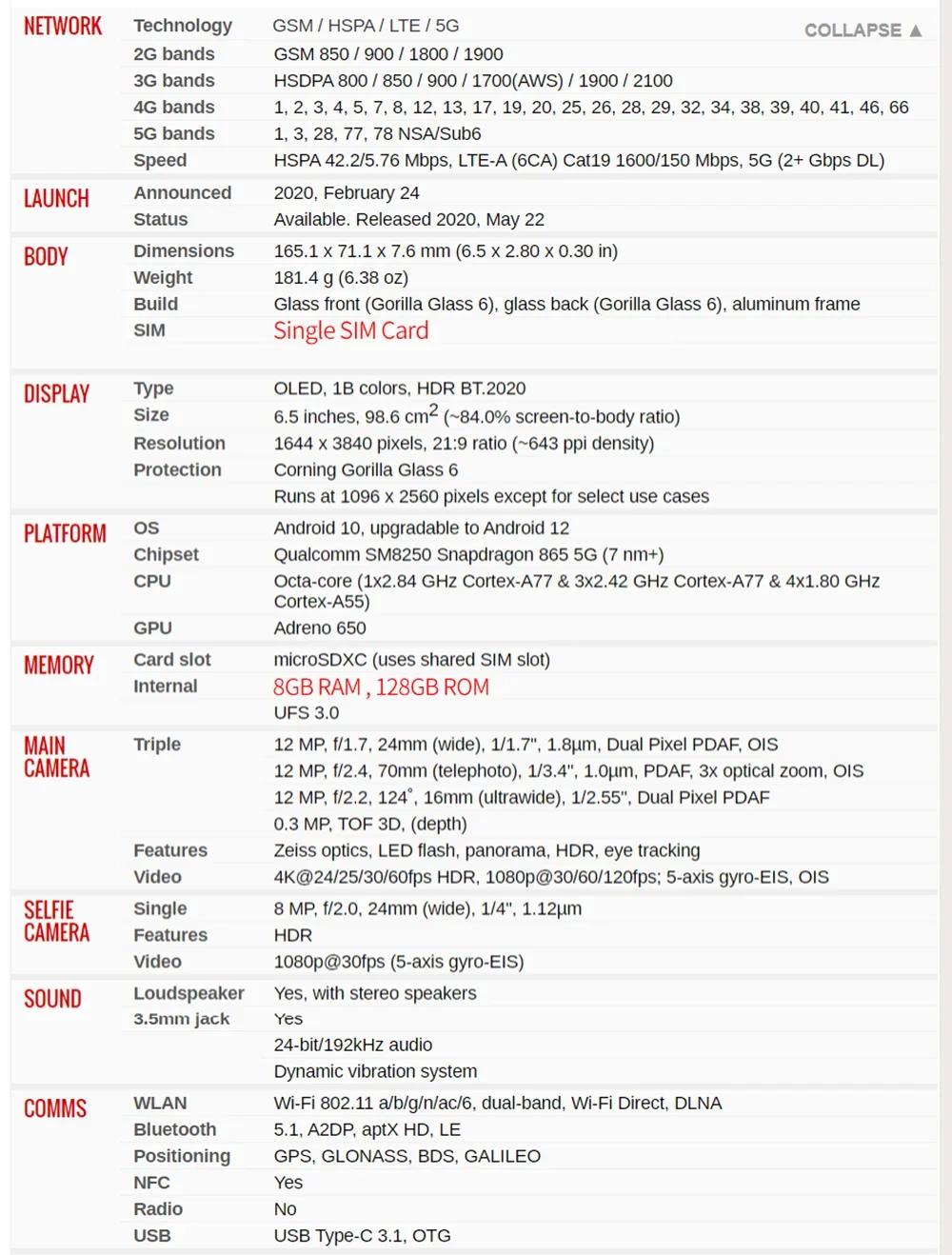 Original Sony Xperia 1 II 1ii XQ-AT51 XQ-AT52 5G Mobile Phone NFC 128GB/256GB 6.5'' 12MP+8MP Snapdragon 865 Octa Core SmartPhone