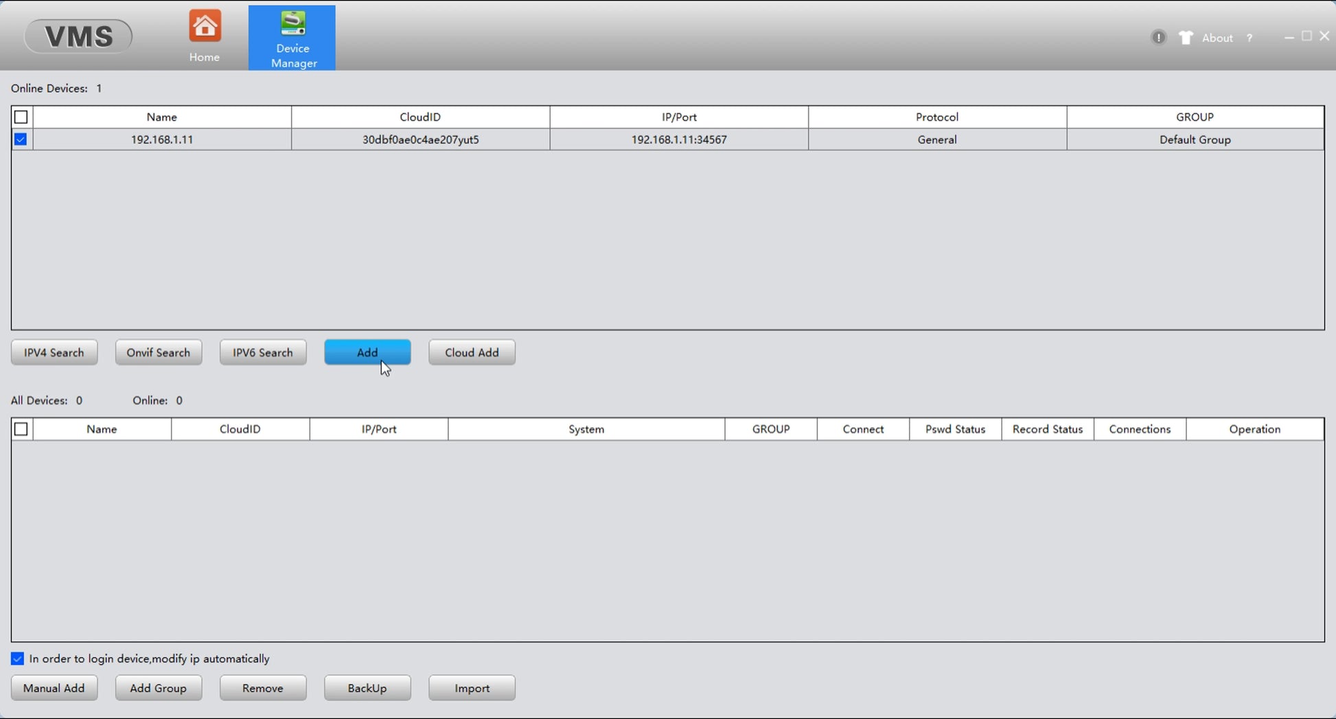 Step 2: Login VMS