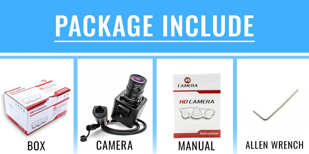CS Mount Lens:2.8mm,4mm,6mm,8mm,2.8-12mm,5-50mm,6-60mm,5-100mm(option) |